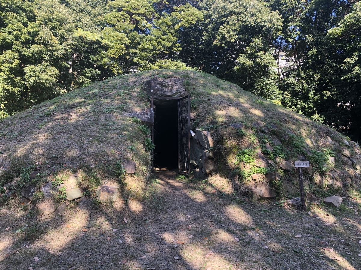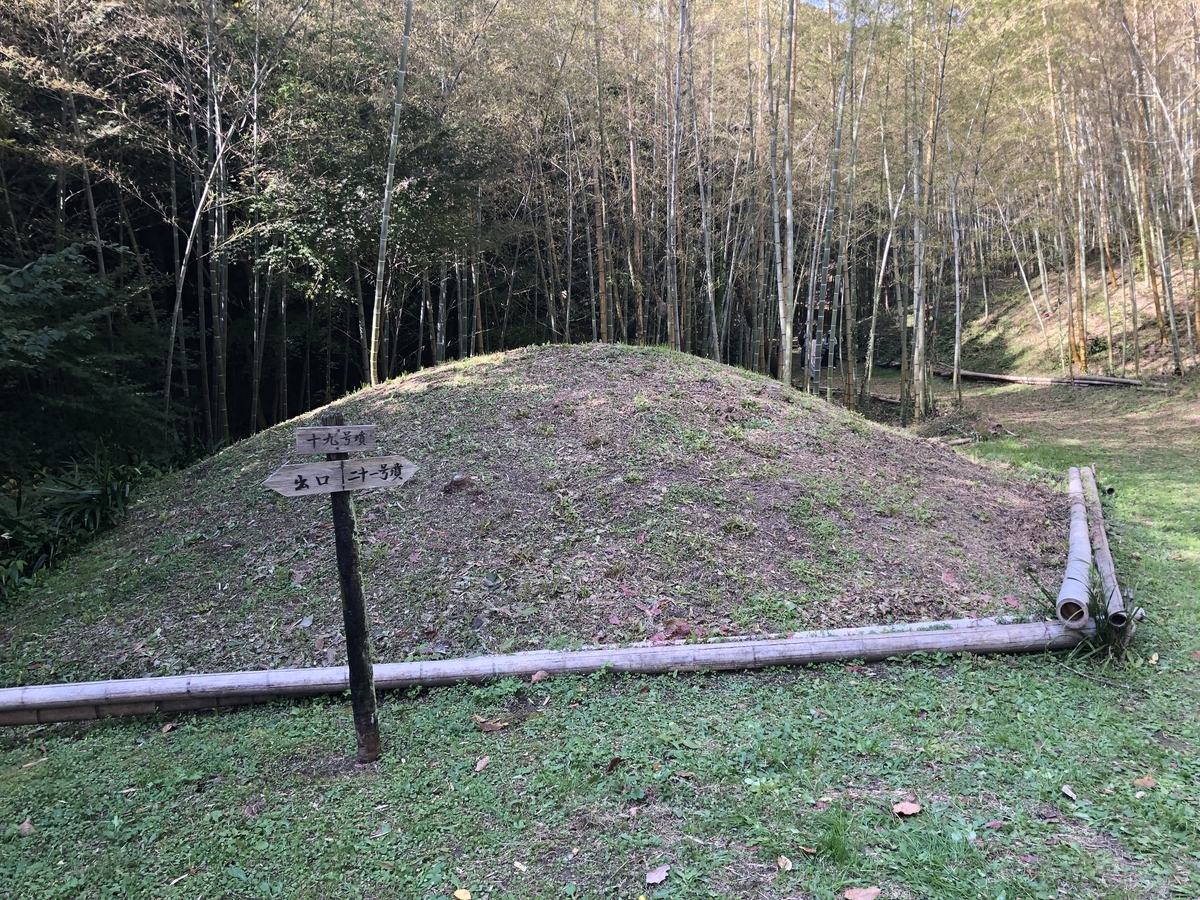 ここにあるのはすべて当時の中央政府「ヤマト王権」とのつながりを誇示する巨大な「前方後円墳」ではなく、規模も形状も比較的質素なものばかりです。(質素とは言え、築造には莫大な時間と費用がかかったはずですが。)スタッフさんの説明によると、「村長さんレベルのお墓」とのことでした。