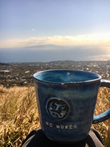 大室山頂上より伊豆大島を望む 初冬の休日、伊豆半島に一人の陶芸家を訪ねた。大室山の麓で「伊豆ブルー」という美しいコバルトブルーの陶器を焼いておられる天野雅夫さんという方だ。 私がこの伊豆ブルーに出会ったのは、たまたま古書で入手した『伊豆半島…